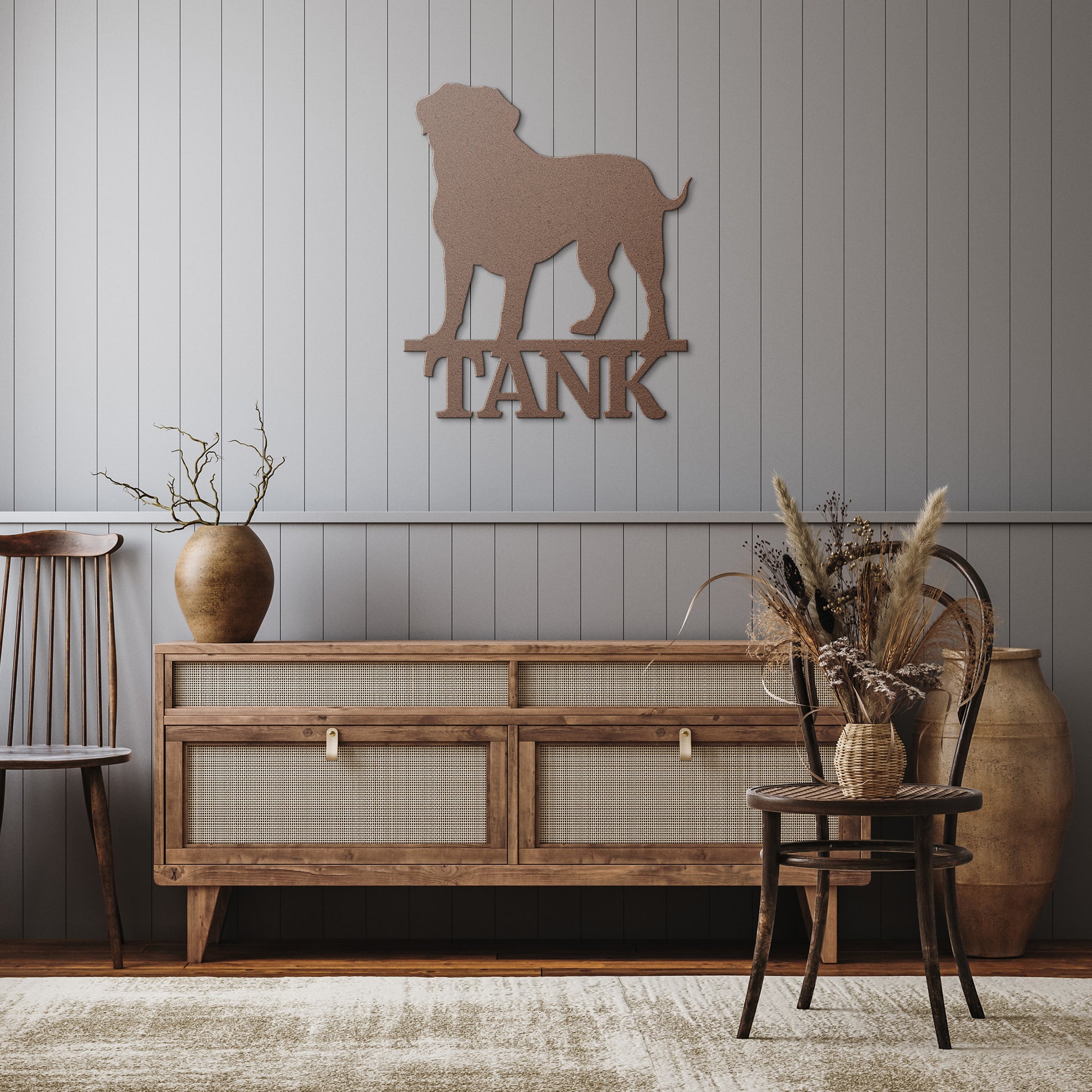 Honor your Mastiff with this customizable piece for their Dog Dwelling! Made with 18 gauge steel and powder coated in your choice of 5 colors, this sign is made to withstand the elements for years of enjoyment. Add a touch of elegance to your home on the inside, outside, or both!